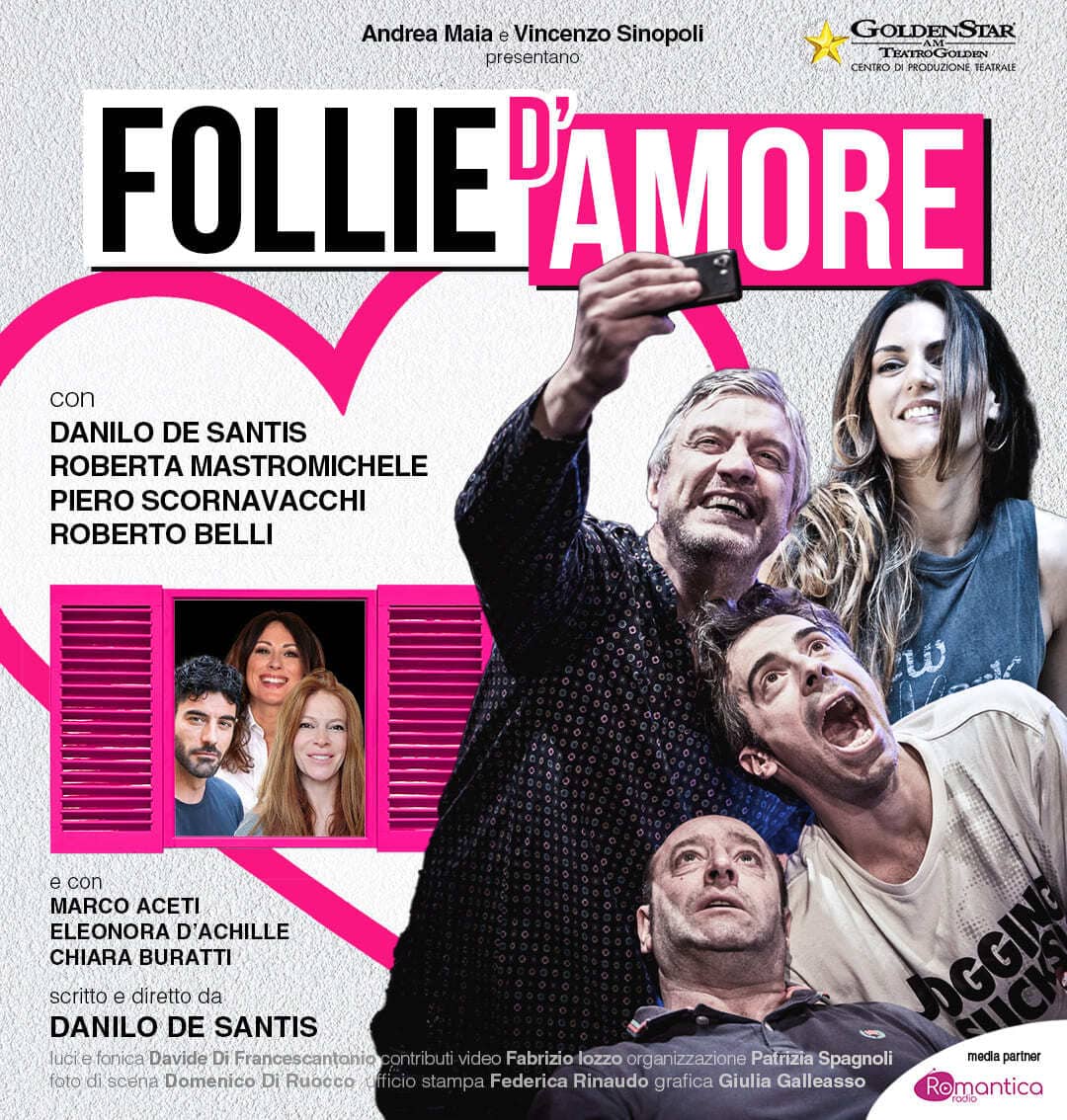 Cosa desiderare per il nuovo anno? Sicuramente la cosa più preziosa di tutte è l’amore, che poi è davvero il motore della vita. E per questo al Teatro Golden riparte il cartellone con le novità del 2026 e la prima ad andare in scena è la commedia “Follie d’amore”, con Danilo De Santis, Roberta Mastromichele, Piero Scornavacchi, Roberto Belli e con Marco Aceti, Chiara Buratti, Eleonora D’Achille, scritta dallo stesso De Santis. Dall’8 al 18 gennaio lo spazio culturale di via Taranto, diretto da Andrea Maia, ospita questa produzione Goldenstar Am che ruota attorno ad una serie di intrecci, fraintendimenti e risate che mettono in evidenza le debolezze e le criticità umane. La storia si apre con Luigi, ancora innamorato di Elena, che adesso ama Vittorio. Luigi decide di spiarla dalla finestra di fronte all’appartamento della coppia, dove vive Ferdinando, fortemente attratto da Luigi. Pur di restare a casa sua, Luigi si finge gay, ma quando le attenzioni di Ferdinando divengono pericolose, Luigi chiede aiuto a Mario, il suo storico amico, che si ritrova a dover interpretare la parte del suo fidanzato pur di salvarlo dalle mire del padrone di casa. Quando finalmente Mario riesce a rinsavire Luigi, si presenta Ilaria, l’avvenente nipote di Ferdinando. Da quel momento le follie d’amore di cui era affetto Luigi, contagiano anche Mario. Da non perdere.