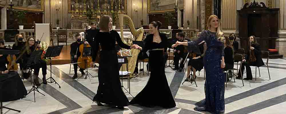 Il “Concerto di Pasqua” rappresenta da 25 anni a Roma l’evento di punta del Festival di Pasqua, in corso nelle chiese e basiliche di Roma con grandissima partecipazione di pubblico fin dal Concerto inaugurale dello scorso 10 Aprile al Pantheon. In programma, in oltre un’ora e mezza, un vasto repertorio di musica sacra con brani e arie da Johann Sebastian Bach, Wolfgang Amadeus Mozart, Arcangelo Corelli, Alessandro Stradella, Georges Bizet, Jules Massenet, Pietro Mascagni, César Franck e il “Panis Angelicus” dalla Messa Solenne di César Franck, in occasione del suo 200° anniversario della nascita, che ha visto le tre cantanti esibirsi insieme nel gran finale, per quello che a tutti gli effetti è stato un “Concerto per la Pace” dal forte impatto emotivo.