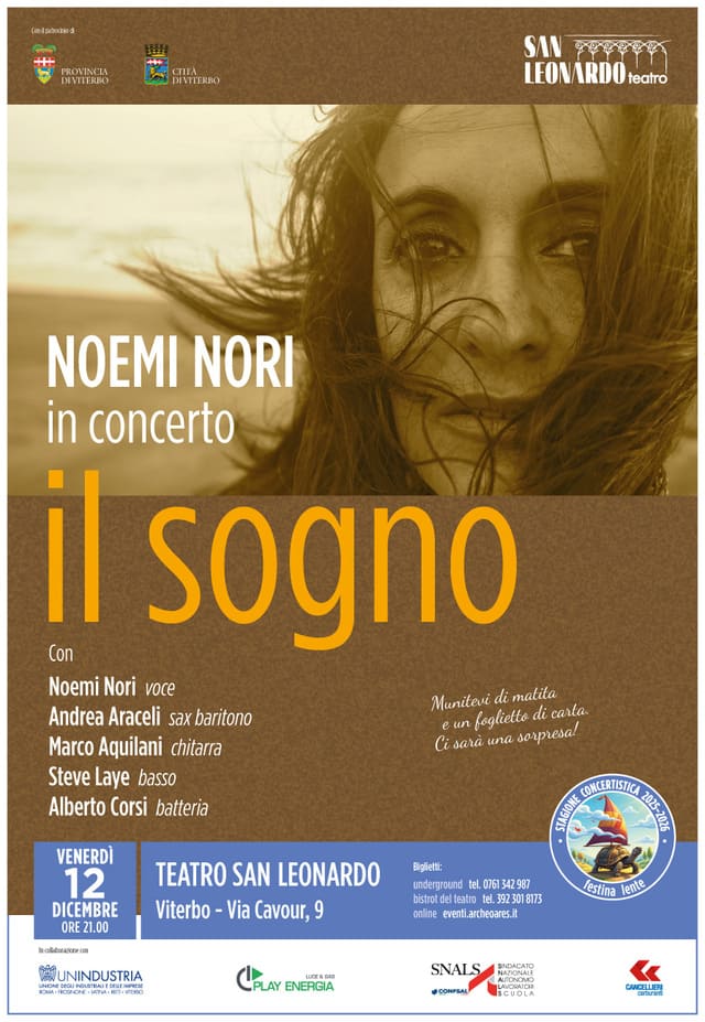 - Online: eventi.archeoares.it/evento/noemi-nori-in-concerto-il-sogno-teatro-san-leonardo/