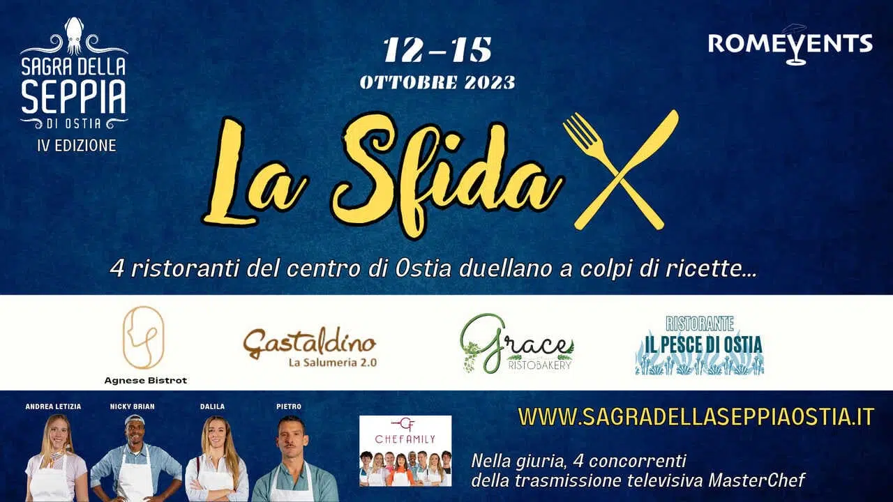 La quarta edizione della Sagra della Seppia si è svolta dal 12 al 15 ottobre 2023 nel centro di Ostia Lido con un format rinnovato e coinvolgente: la gara “La Sfida”, ideata per mettere a confronto quattro locali in un confronto gastronomico a base di seppia.
